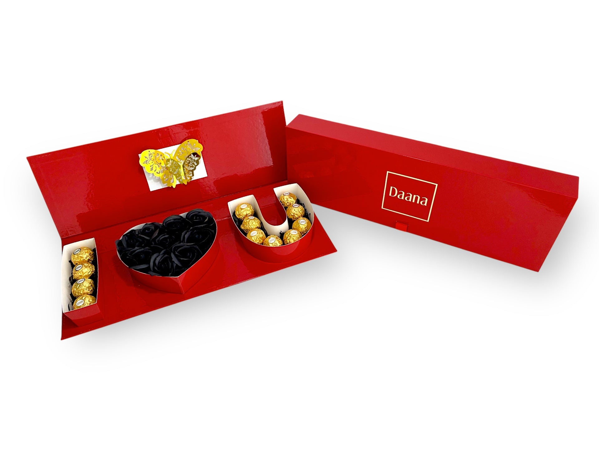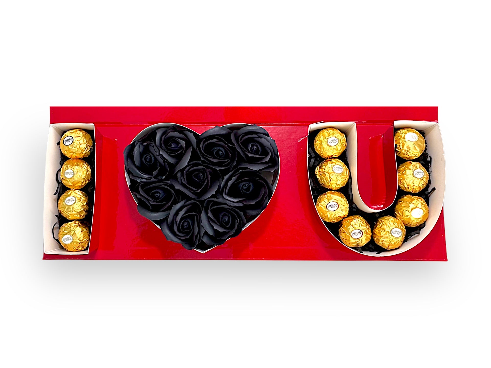 Our 'I Love You' box is a statement piece filled with Ferrero Rocher bonbons and carefully arranged eternal flowers that will never fade.